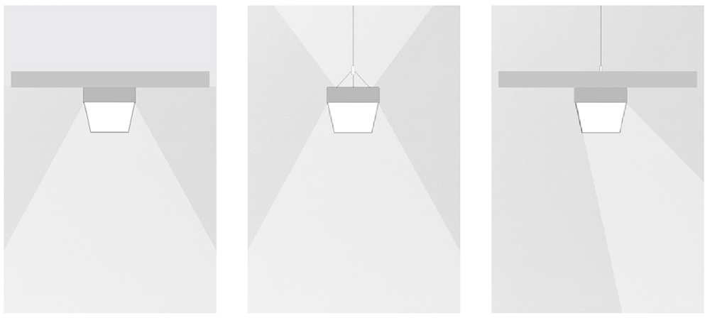 Die Ausführungen sind in den Varianten direkt, direkt-indirekt und asymmetrisch strahlend erhältlich. © RIDI Leuchten GmbH