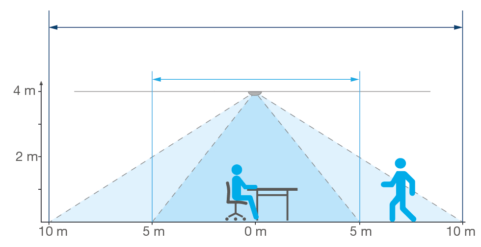 An der Leistungsfähigkeit wird dabei nicht gespart: Schon die kleinste Ausführung des Präsenz- und Bewegungsmelders erreicht mit einer Zehn-Meter-Durchmesser-Abdeckung bei der Bewegungserfassung einen der größten Erfassungsbereiche auf dem Markt.
