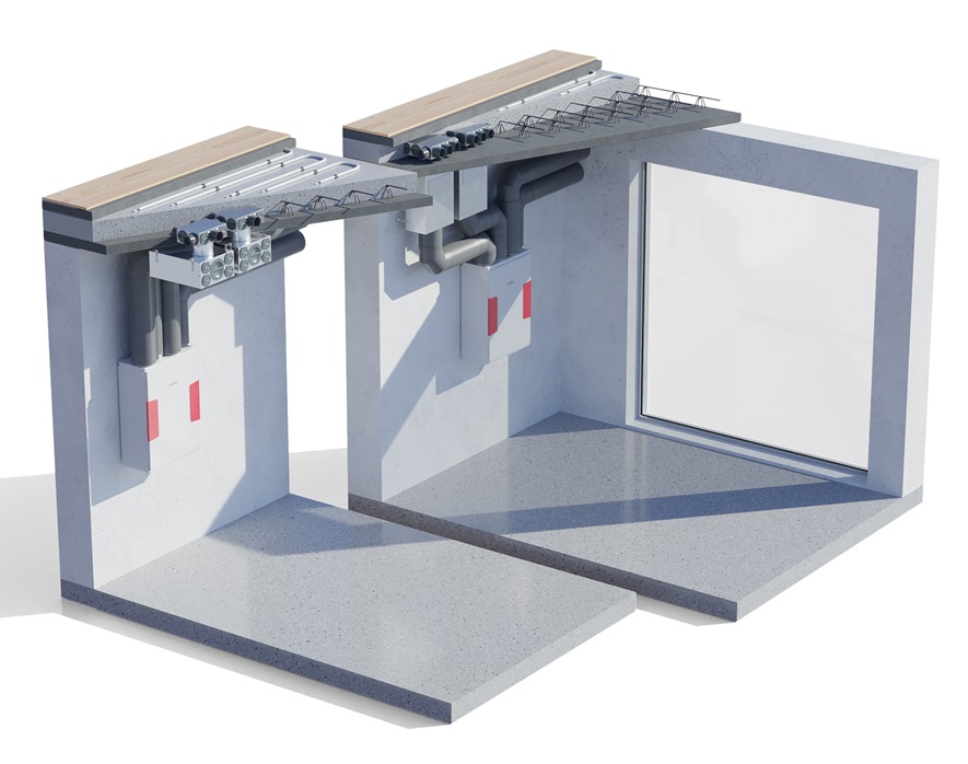 Neben dem Übergang in die Decken kann sie mit zusätzlichen Anschlussstutzen auch als Durchgangsverteiler genutzt werden. Das ermöglicht eine intelligente und platzsparende Luftverteilung über mehrere Stockwerke.