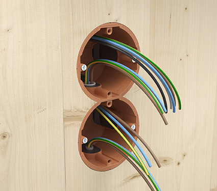 Elektro-Installationen in Massivholzwänden. Für Hohlwand und Brandschutz.