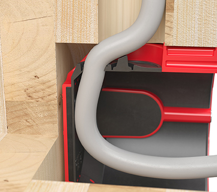 Mit den innovativen Massivholz- Geräte-Verbindungsdosen und Brandschutz-Geräte-Verbindungsdose Massivholz PROTECT® hat KAISER hier einen neuen Standard geschaffen, der erstmals die Klemmrippen-Befestigung in der Bauteilöffnung festlegt. Darüber hinaus definiert er auch eine innovative Leitungseinführung, die einen Ausgleich der Installationstoleranzen und eine optimale Einführung der Leitungen ermöglicht, So sind keine zusätzlichen Fräsungen und sonstiger Aufwand erforderlich. Zudem hat die Brandschutz-Geräte-Verbindungsdose die Feuerwiderstandsklasse des Massivholzelements von F30-B bis F120-B ohne dass zusätzliche Kapselungen vorgenommen werden müssen. Fertighaus- und Modulhersteller können jetzt die Dosen in der seriellen Fertigung universell in allen Wandaufbauten mit und ohne Sichtanforderungen einsetzen und müssen nicht verschiedene Typen bevorraten. Da keine zusätzlichen Montageschritte notwendig sind, werden Zeit und Kosten in der Werksfertigung eingespart.