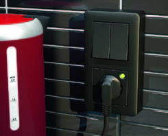 Auch die Funktionen sind deutlich erweitert worden: Es gibt Universal-, Wechselkontroll-, Serien- und Kontrollschalter, alle mit einer Schaltleistung von 16A, Taster, beleuchtete Taster, Jalousietaster, Steckdosen mit erhöhtem Berührungsschutz, Steckdosen mit Klappdeckel und Steckdosen mit FI, Doppelsteckdosen mit und ohne Geräteträger, Uni-LED-Drehdimmer, PIR, RJ45-Dosen, Datenanschlussdosen, Antennensteckdosen, USB-Ladestationen, Steckdosen mit USB.
