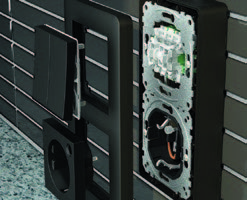 Exxact-Aufputzgehäuse in 1-fach bis 3-fach und einer variablen Aufputzhöhe von 21mm oder 35mm bestehen aus zwei Teilen, die die Montage vereinfachen und die Montagezeit verkürzen. Sie eignen sich perfekt für den Umbau und die Sanierung.Die vielen Durchbruchmöglichkeiten im Unterteil ermöglichen auch eine Montage auf Unterputzdosen sowie eine flexible Kabelzuführung. Mit einer Einbautiefe von nur 20 Millimetern – im Vergleich zu den sonst üblichen 35 Millimetern – sind die Schaltereinsätze und Bewegungsmelder bestens für die Aufputzmontage geeignet.