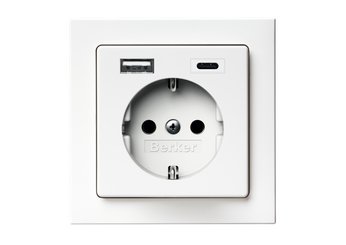 Kompakte 3-in-1-Lösung: die Berker Steckdose SCHUKO® mit USB-A- und -C-Anschluss