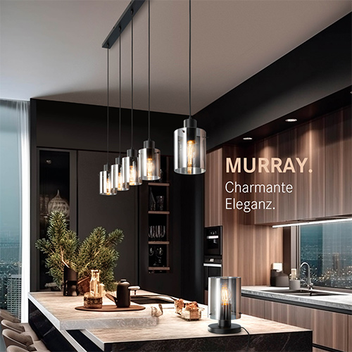 Ein Produkthighlight aus dem neuen dekorativen BRUMBERG Sortiment ist beispielsweise MURRAY. Ob über dem Esstisch oder im Foyer, die MURRAY Pendelleuchten sind ein echter Blickfang. Die dazu passende Tischleuchte der Produktfamilie ist ein absoluter Hingucker, der jedem Raum eine charmante Eleganz verleiht. Mit ihrem metallisierten Glaszylinder reflektiert sie das Licht so, dass sie jeden Raum in ein seidig sanftes Licht hüllt. Perfekt für den Nachttisch, den Schreibtisch oder einen Beistelltisch im Wohnbereich. Mit ihrem sanften und dennoch ausdrucksstarken Licht verwandeln die Leuchten jeden Raum in eine luxuriöse und einladende Atmosphäre. Das ist die MURRAY Leuchtenfamilie – zeitlos und elegant. Entdecken Sie diese und viele weitere Produkte in der dazu passenden Broschüre von BRUMBERG.