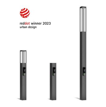 Bewährte Lichtstelen und Poller der Serie BOCARO, die bisher als reine Außenbeleuchtung fungierten, wurden dabei hybridisiert und die Ladefunktion smart in das Design der Außenleuchten integriert. Diese Innovation und das herausragende Designkonzept überzeugte die Jury des diesjährigen RED DOT Design Wettbewerbs: In der Kategorie URBAN DESIGN erhielt die Serie BOCARO den renommierten Award.