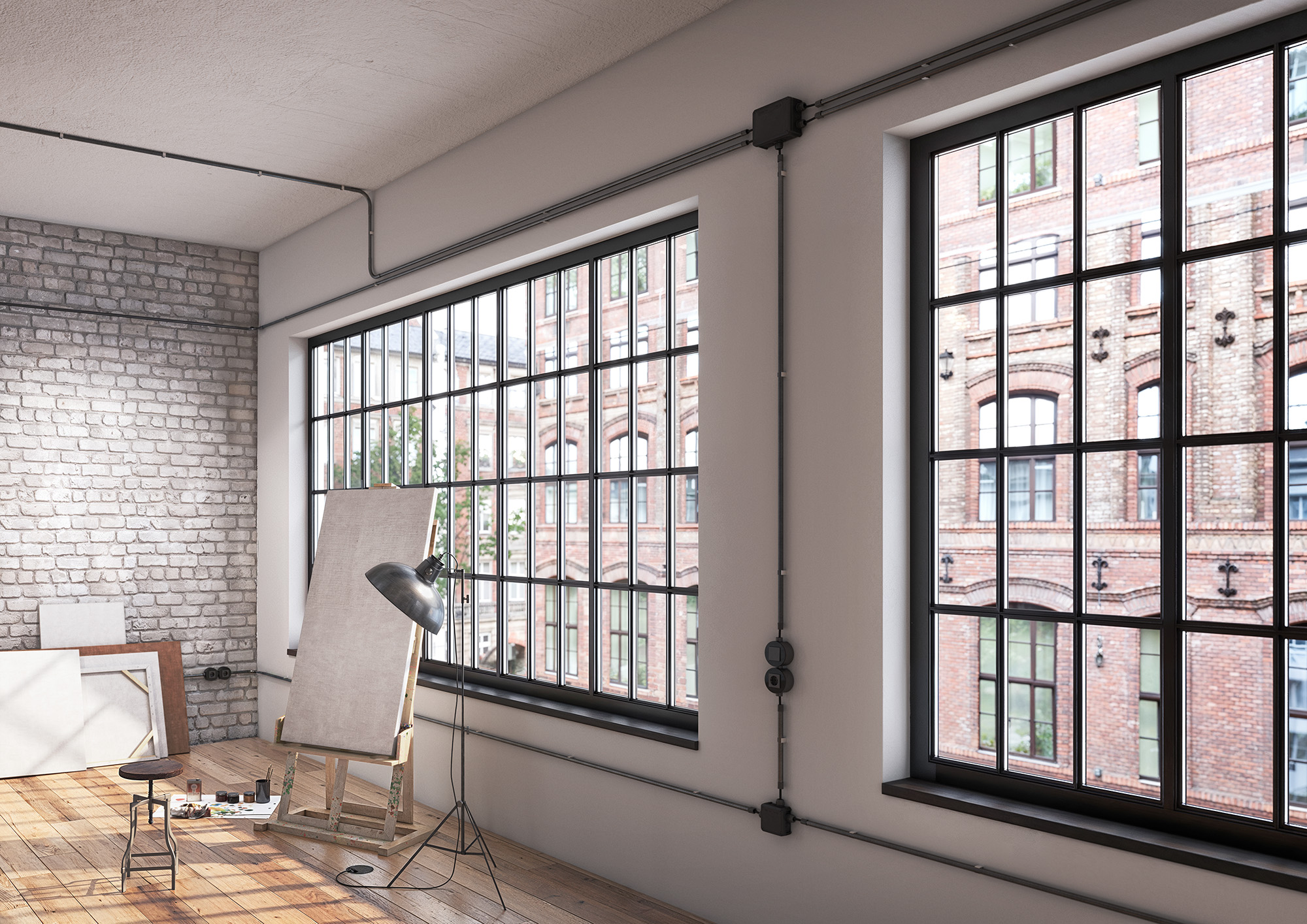 Ob Retro oder Industrial Style – unsere Produkte aus dem Sortiment OBO BlackLine ermöglichen durchgängige Designstatements, die sich nahtlos in zeitgemäße Architektur einfügen und so den Wert der Objekte steigern.