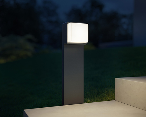 Außenbereiche rund ums Haus können mit den Lichtwürfeln ganz nach Wunsch beleuchtet werden. Hierfür stehen von allen Leuchten jeweils eine Version mit (SC) und ohne Sensor (C) zur Verfügung. Die Wandleuchte L 845 SC/ C sowie die Wegeleuchten GL 85 SC/ C 600 und 900 besitzen ein 9 Watt STEINEL LED-Lichtsystem. Mit einem Lichtstrom von 719 Lumen (C-Version) bzw. 655 Lumen (SC-Version) spenden sie warmweißes Licht mit einer Farbtemperatur von 3.000 Kelvin. In der SC-Version verfügen die Leuchten über individuell einstellbare Komfortfunktionen wie Dämmerungsschwelle, Nachlaufzeit und ein einstellbares Grundlicht zwischen 1 und 50 Prozent. Gleichzeitig kann für das Hauptlicht ein Wert zwischen 0 und 100 Prozent gewählt werden. Der für das Auge angenehme Softlichtstart fährt die Leuchte bei Aktivierung sanft auf den maximalen Lichtwert hoch.