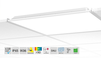 Durch hervorragende Entblendung eignet sich PARLEDO mit vierfacher MultiLumen-Funktion auch bei hohen Leuchtenlichtströmen vorbildlich für den normgerechten Einsatz an Bildschirmarbeitsplätzen.